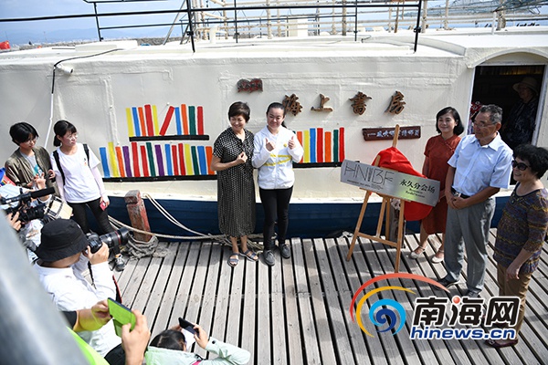 1月21日上午11時,央視著名主持人敬一丹、書博會代表、海上書房代表在西島海上書房共同為海南島國際圖書(旅游)博覽會永久分會場揭牌。 南海網記者 沙曉峰攝