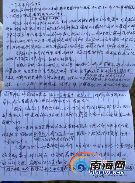 方先生為美蘭區工作人員寫的感謝信。通訊員供圖