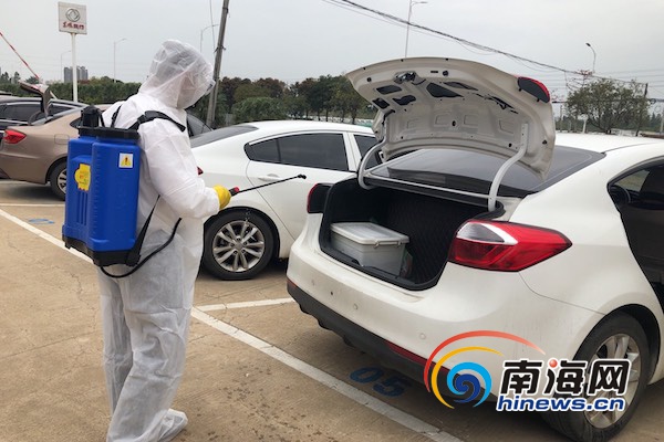 滴滴設(shè)置三亞司機(jī)防疫服務(wù)站,為堅(jiān)守在服務(wù)一線的司機(jī)師傅們免費(fèi)發(fā)放口罩,消毒液等防疫物資,并幫助大家為車輛消毒。 滴滴供圖
