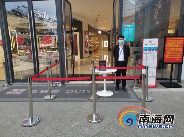 海口日月廣場免稅店將全面推行和實施“海南省健康一碼通系統”,每個出入口都安排了專人掃描進店人員的個人健康碼,測量、登記進店人員的體溫和檢查口罩佩戴情況,符合疫情防控要求方可進店。免稅店供圖