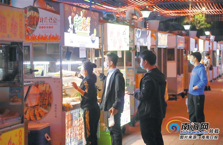 位于海口龍華區的海墾花園夜市于2月28日開門迎客,成為海口首家復工的夜市。 圖為市民在攤位前等候餐食。海南日報記者 李天平 攝
