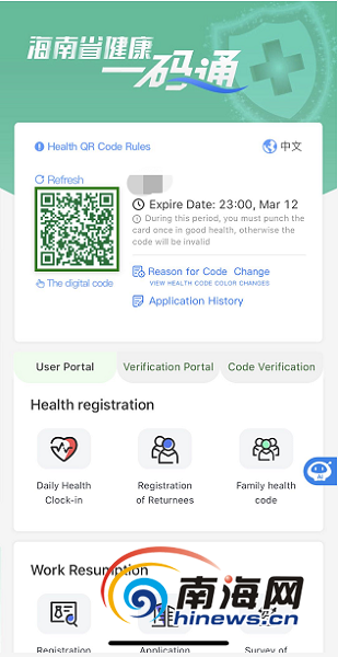 首頁 > 英文版海南健康碼3月10日正式上線啦!