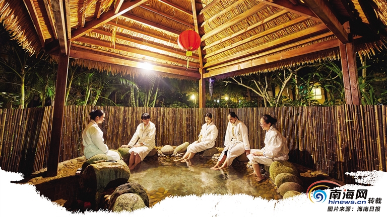 游客在瓊海博鰲海島森林酒店泡溫泉。 豐收 供圖