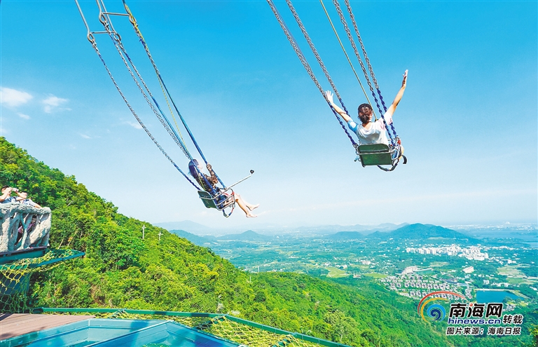 游客在保亭呀諾達景區體驗懸崖秋千。 武昊 供圖