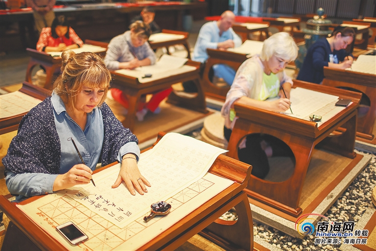 俄羅斯游客在博鰲樂城體驗中式康養生活。 阮琛 供圖