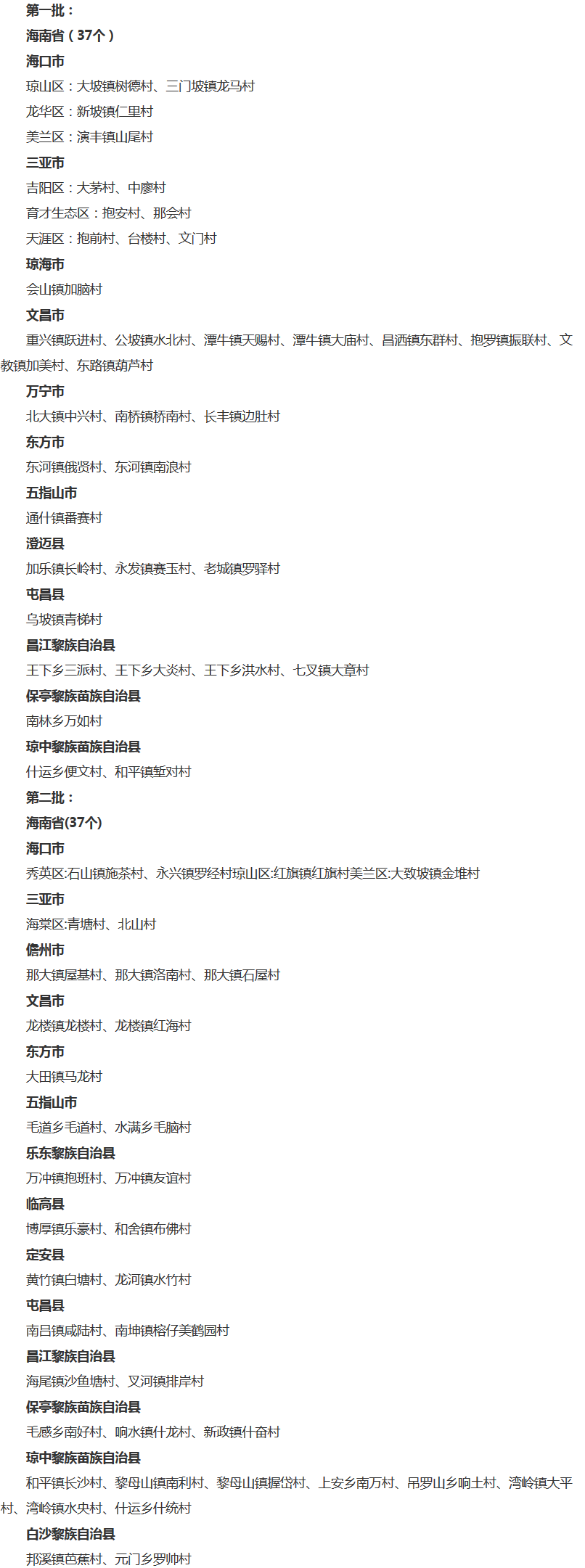 海南74個(gè)鄉(xiāng)村上榜第一批、第二批國(guó)家森林鄉(xiāng)村名單
