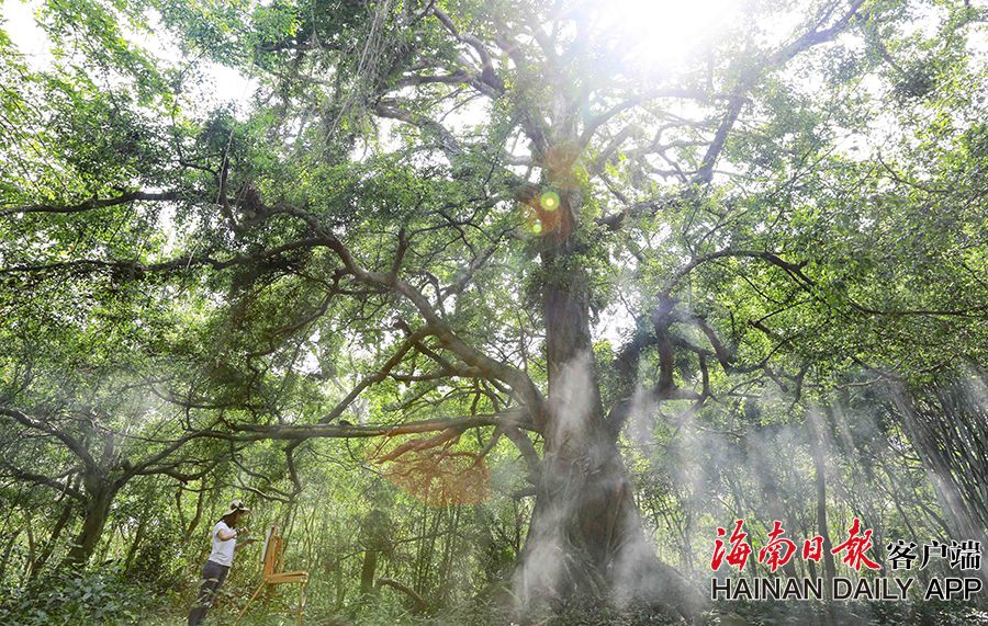 近日,記者走進儋州市大成鎮看到,大成鎮古樹資源豐富,垂葉榕、紅豆杉、高山榕、見血封喉、土檀等珍貴樹種比比皆是,有的樹齡達數百年甚至上千年,仿佛一座沒有圍墻的“古樹館”。據統計,大成鎮共有古樹、大樹、奇樹200多棵,幾乎村村有古樹,村村有大樹,村村有奇樹。大成鎮的村民們一直以來都愛樹護樹的良好習俗,村民和古樹和諧共處,以至古樹經歷數百年的風雨洗禮,至今依然枝繁葉茂,樹冠遮天蔽日。圖為:4月10日,在儋州市大成鎮調南村委會和侃村,一株400多年的見血封喉古樹下,游人在樹下寫生。(海南日報記者 陳元才 攝影報道)