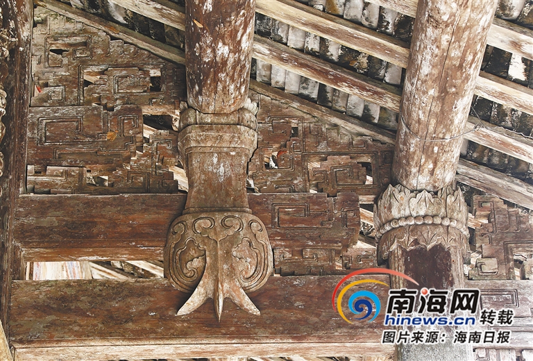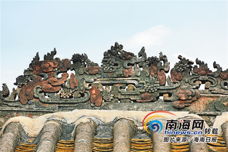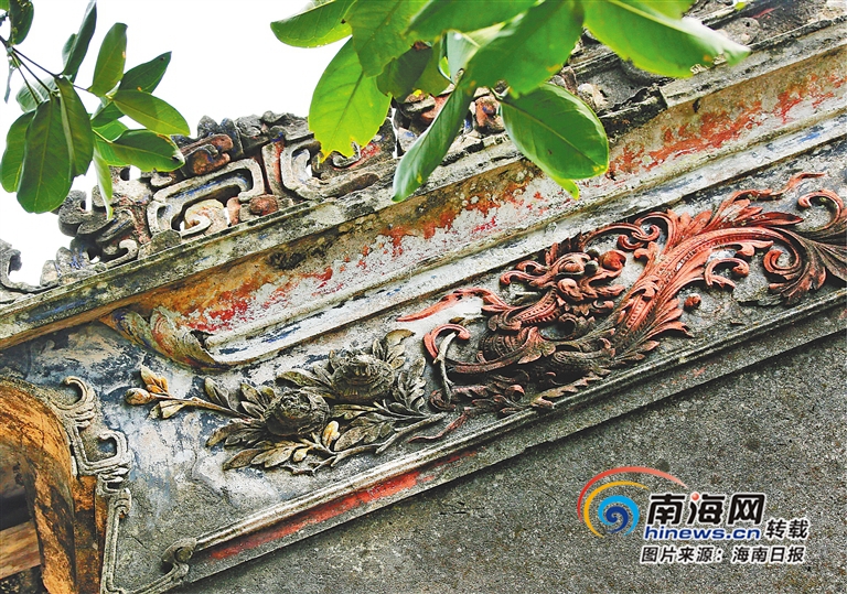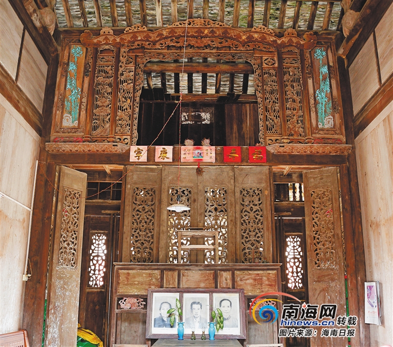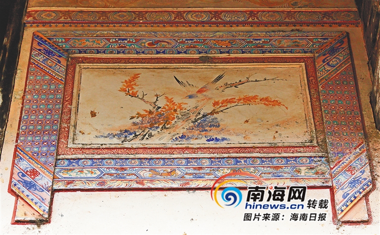 林家大院精致的木雕門、瓦房屋脊的翹頭、屋檐下的精美壁畫和別具一格的彩紋地磚等,體現了較為高超的傳統(tǒng)建筑技藝,堪稱海南古民居的經典之作。
