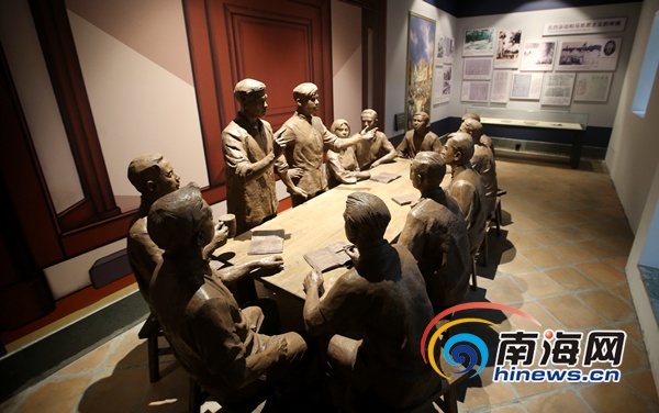 《紅旗不倒》主題展廳內(nèi)中最令人震撼是中共瓊崖第一次代表大會雕塑,該雕塑生動形象地還原了中共瓊崖第一次代表大會的場景,正是在此次代表大會上,選舉產(chǎn)生了中共瓊崖地方委員會,從此瓊崖人民在黨的領(lǐng)導下掀起了轟轟烈烈的大革命高潮。