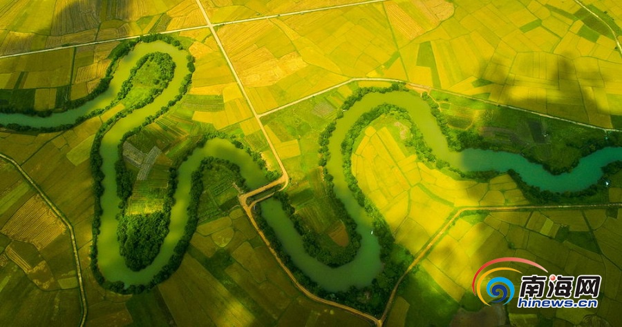 據(jù)了解,三十六曲溪在當(dāng)?shù)厝丝谥斜挥H切稱為“三十六道灣”,是當(dāng)?shù)刂匾霓r(nóng)業(yè)灌溉河流,滋潤了周邊廣闊的農(nóng)田,形成了壯觀的農(nóng)田景觀。近期,海口市的早稻陸續(xù)成熟,當(dāng)?shù)剞r(nóng)民利用晴好天氣收割稻谷。