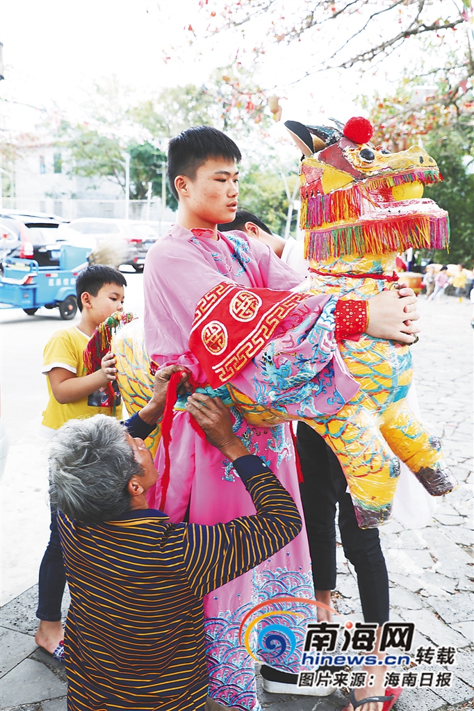 如今,每逢節假日,吳清河便坐在村口的大樹下,指導村里的孩子排練麒麟舞。以老帶新的方式,讓麒麟舞舞隊不斷發展壯大。年輕的舞隊成員頻繁外出表演,參加海口萬春會等活動,海南麒麟舞被越來越多人所熟知。