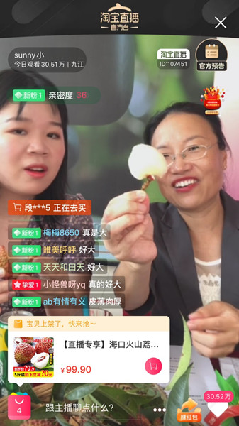 海口農業(yè)農村局局長陳芳在淘寶直播推介??诨鹕嚼笾ν?。淘寶供圖