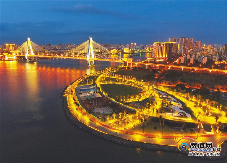 5月17日,俯瞰海口灣世紀(jì)公園夜景。近年來,海口市著力提升城市公共區(qū)域亮化水平,一方面方便了市民游客夜間出行,激活了夜經(jīng)濟(jì),另一方面展示了夜海口的獨特魅力,提升了城市的整體形象。海南日報記者 封爍 攝