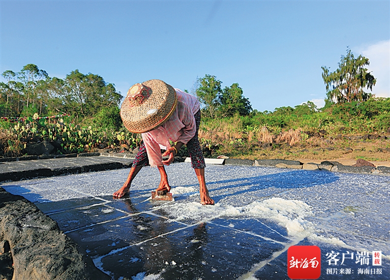 日照充沛、海水優良的海南島,沿海地區自古就曬制海鹽,多年傳承,是海南重要的非遺傳統工藝之一。