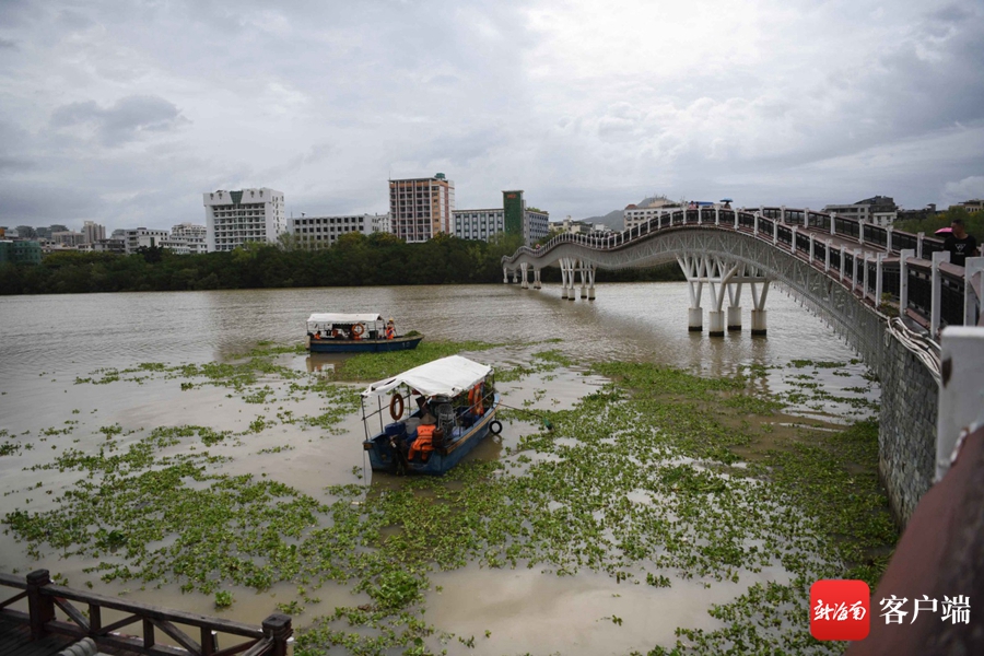 連日來(lái),三亞連降暴雨,三亞河上游的水浮蓮順流而下,漂浮在三亞河。一些市民和志愿者主動(dòng)和園林綠地所的工作人員一起加入到清理水浮蓮的隊(duì)伍中。
