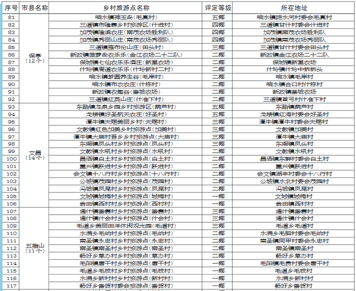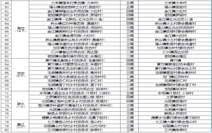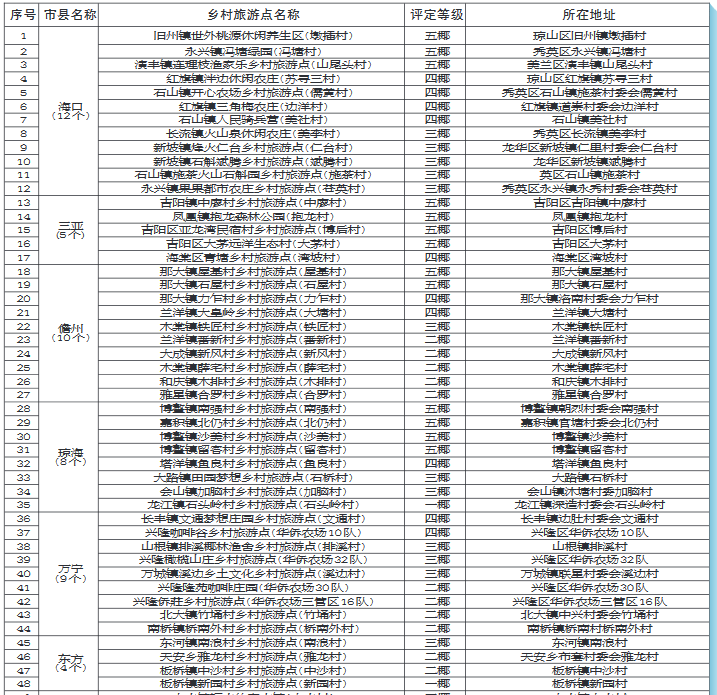 海南省椰級(jí)鄉(xiāng)村旅游點(diǎn)名錄