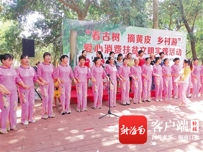 儋州市大成鎮調南村舉辦“看古樹,摘黃皮,游鄉村”愛心消費扶貧文明實踐活動,村民演出儋州調聲歡迎市民和游客。特約記者 李珂 攝