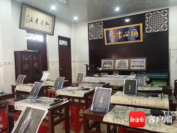 瓊海大園古村內的書法課堂。記者 蘇靚 攝