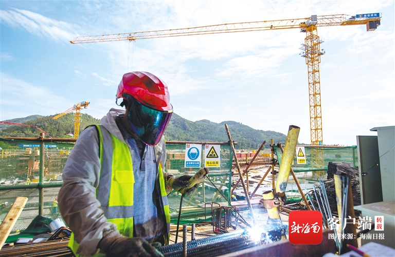 在國家南繁科研育種基地(安馬洋)配套服務(wù)區(qū)項目建設(shè)工地,施工人員正在加緊施工。武昊 攝
