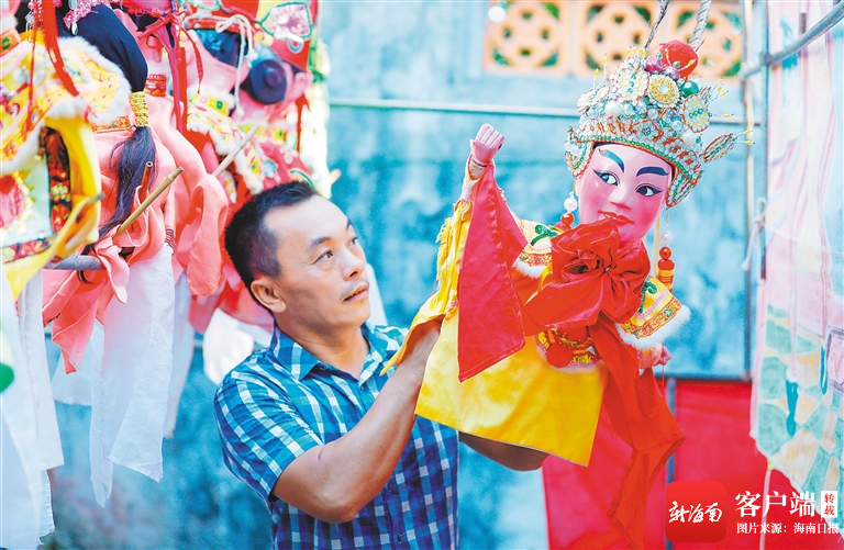 半生情系海南公仔戲的馮海。海報集團全媒體中心記者李昊攝