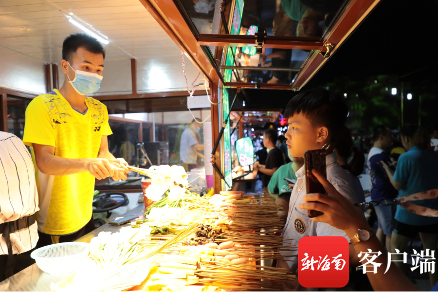 在儋州那大城區(qū)一直有夜市傳統(tǒng),夜市業(yè)態(tài)分布零散,又存在食品安全、產(chǎn)品質(zhì)量、環(huán)境衛(wèi)生等管理難題。去年儋州高標(biāo)準(zhǔn)開展特色示范街建設(shè)。在儋州市“一創(chuàng)兩建”指揮部的指導(dǎo)下,由儋州市文旅公司建設(shè)的示范點(diǎn),全長(zhǎng)200米,街道寬15米,共有147個(gè)移動(dòng)攤位。今年5月10日開市,夜市開放時(shí)間從下午17:30到次日凌晨1:30,開放期間實(shí)行交通管制。夜市有特色小吃攤位100個(gè)、特色小商品攤位42個(gè),解決三四百人就業(yè)。