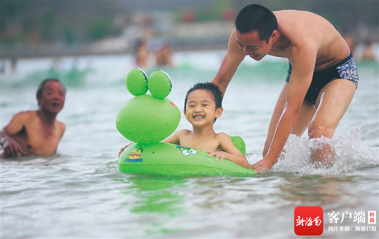 每逢端午,假日海灘、大東海、亞龍灣等鄰近市區的海灣,總能看到全家出動的熱鬧景象。