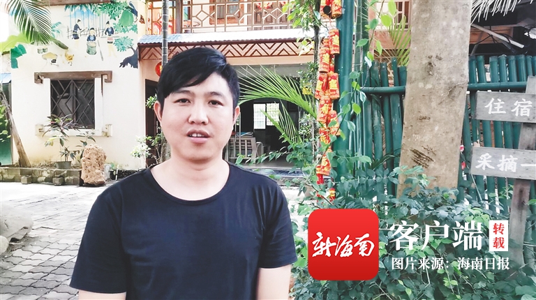 當下什進村廣場旁的鳳凰樹花開得正紅艷,不遠處就是我的民宿——鳳凰樹客棧。小院內,我種的百香果綠意盎然,爬滿了架子,傳統樣式設計的涼亭,以及墻上的黎族特色繪畫,都是我精心設計的。