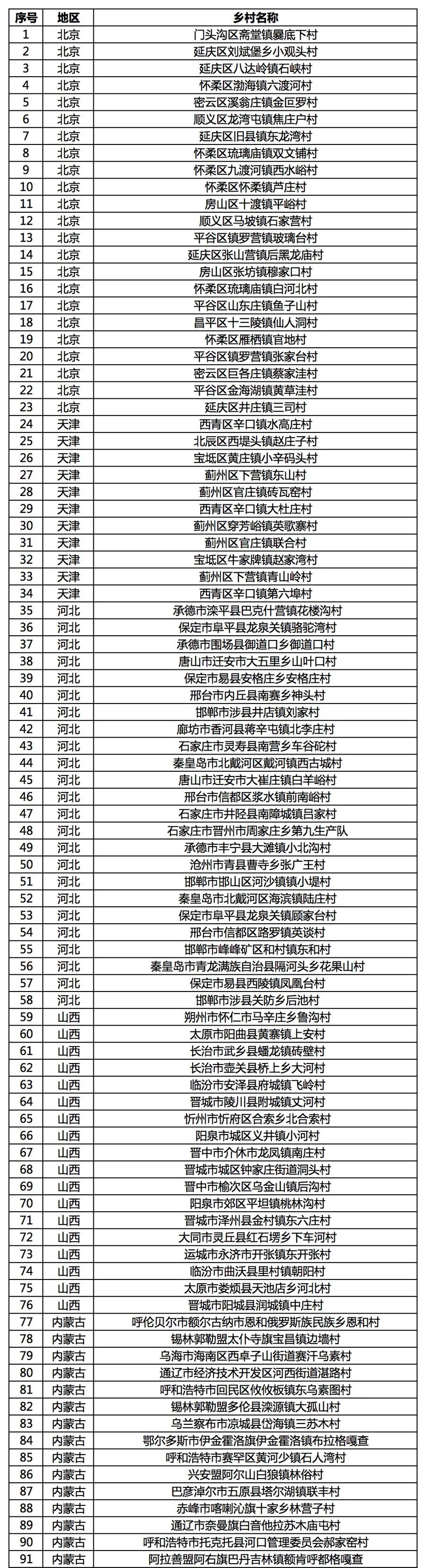 擬入選第二批全國鄉村旅游重點村名錄鄉村名單
