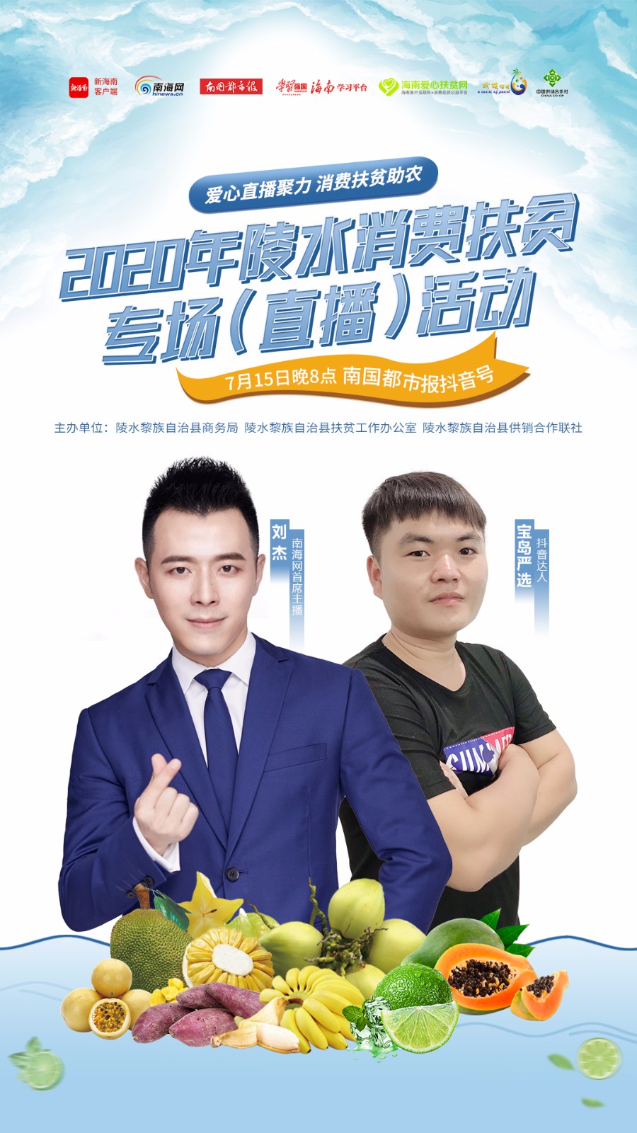 2020年陵水消費(fèi)扶貧專場(chǎng)(直播)活動(dòng)將于7月15日晚8點(diǎn)在南國(guó)都市報(bào)抖音號(hào)火熱舉行,敬請(qǐng)關(guān)注。
