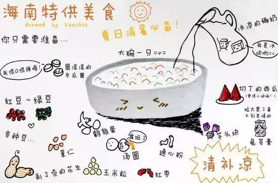 夏日,夜幕降臨后,沒有了白天的驕陽似火,島民最享受的事情莫過于和兩三好友坐在椰子樹下,乘著涼風,吃上一碗冰爽的清補涼,那種舒服勁真是透入了心扉。清補涼真可謂遍布全島的各個角落,走在海南的街頭巷尾,“清補涼”三個字甚至比“辦證”二字出現頻率還要高。