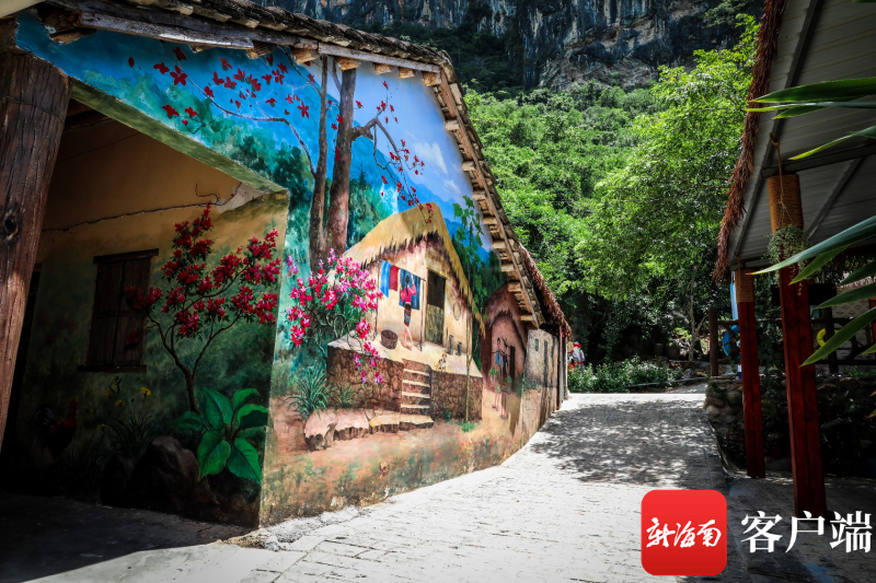 三派村民宅景觀,將墻繪藝術與當地自然、人文環境、黎鄉故事相互結合,打造了“流動的黎族文化博物館”。記者 姚皓 攝