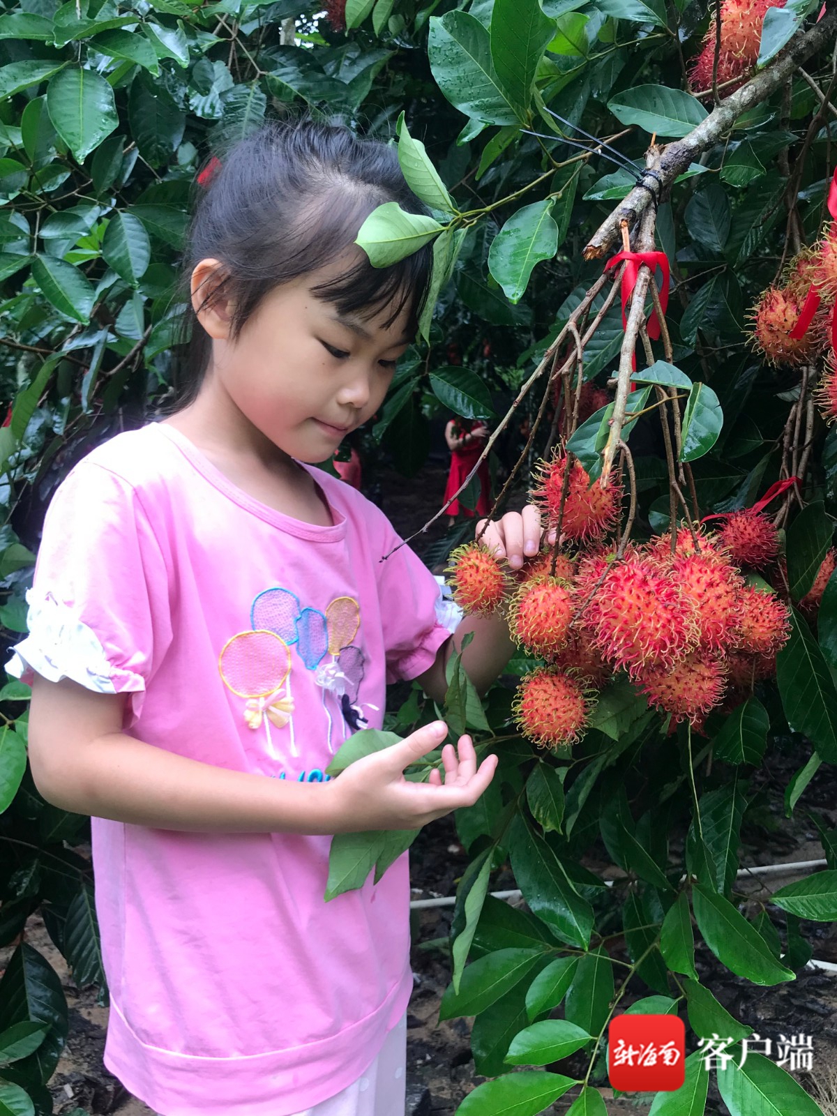 “今年的紅毛丹特別甜,果肉也是滿滿的厚實,一邊摘一邊用手剝開來吃,根本停不下來。”保亭的蒲少輕一家三口已是第二次參與到紅毛丹采摘季的“人潮”中,去年她是和丈夫一起過來,今年還帶著小寶寶