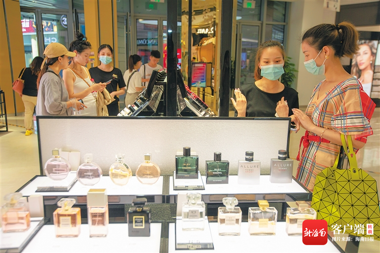 近日,在海口日月廣場免稅店,顧客在選購免稅商品。海南離島免稅購物新政策實施后,每人每年免稅購物額度增加、免稅品種類增加,吸引了不少島外旅客來我省購物。本報記者 袁琛 攝