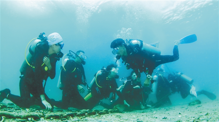 游客在陵水分界洲島學習潛水。武昊 童國強 供圖