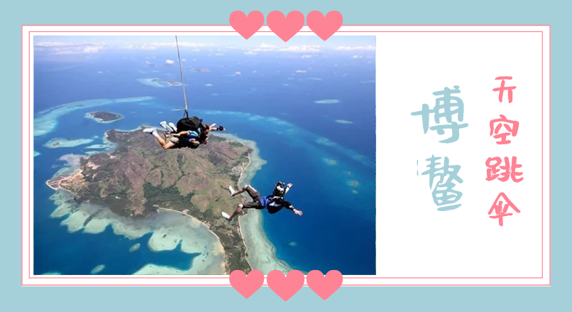 博鰲天空跳傘是目前國內唯一的海景跳傘基地。游客從4000米高空縱身一躍,自由落體的失重感讓人腎上腺飆升,享受廣闊的大海美景帶來的視覺震撼。與心愛的TA一起準備往下跳的時候,一片汪洋大海直接展現在你的眼前,有一種穿越時空隧道的感覺。