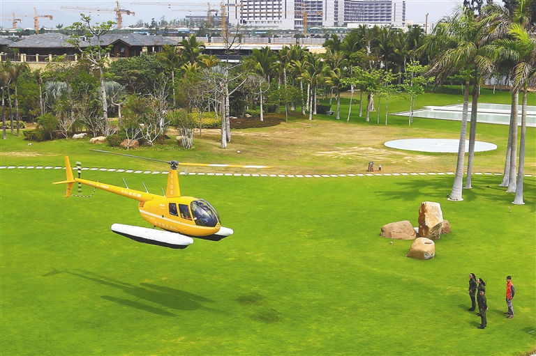 三亞亞龍通航直升機滿載游客起飛。海南日報記者 武威 攝