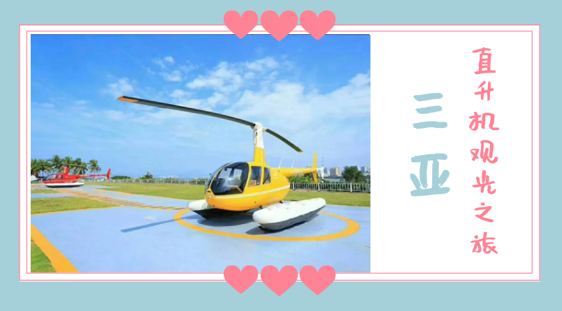 據了解,三亞直升機觀光游覽項目由三亞亞龍灣通用航空有限公司運營,目前有大東海景區、鳳凰島、蜈支洲島景區、西島景區等飛行點,將三亞各個景點串聯起來,航程有1公里、3公里、5公里、10公里,如游客需要,還可提供個性化的包機服務。