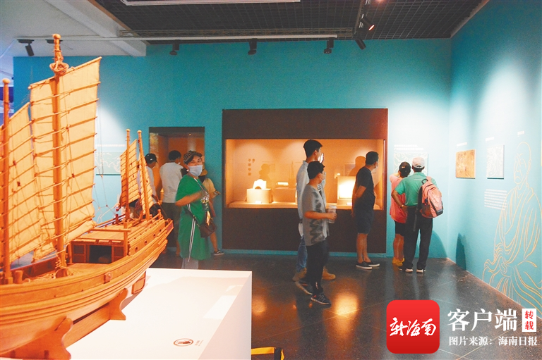 此次展覽所展出的甘泉島唐宋居住遺址全景照片、陵水軍屯坡唐代珊瑚石棺墓照片以及三亞大云寺遺址出土的唐代筒瓦、板瓦等文物向人們講述著當(dāng)時(shí)人員往來(lái)繁忙、貿(mào)易活動(dòng)豐富的海上絲綢之路故事。