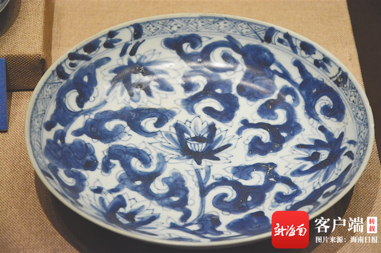 宋代青白釉刻花盤、宋代青釉劃花母子盒、元代青釉蓮瓣紋雙魚瓷洗、明代青釉菱花口折沿大盤、明代藍(lán)釉印花香插、清代青花細(xì)描花卉紋盒、清代青花福祿壽三星盤……此次展出的歷年來(lái)南海海域出水的陶瓷器可謂品種豐富,涵蓋青白瓷、青瓷、青花瓷多個(gè)種類,足見(jiàn)當(dāng)時(shí)海上絲綢之路的繁華。這條聯(lián)系東西的瓷器之路,經(jīng)過(guò)南亞各國(guó),跨越印度洋,直抵西亞及波斯灣,最遠(yuǎn)可達(dá)非洲東海岸,持續(xù)延伸至太平洋、印度洋、大西洋的廣闊海域。