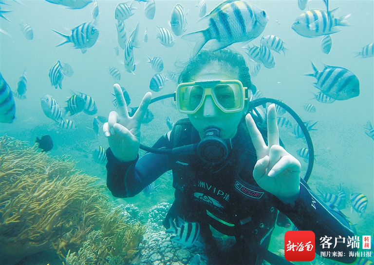 游客在三亞蜈支洲島旅游區附近海域潛水。海南日報記者 武威 攝