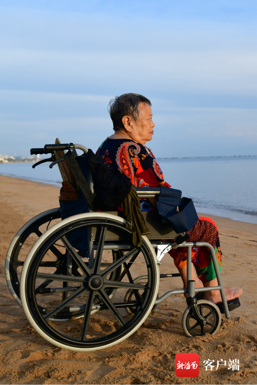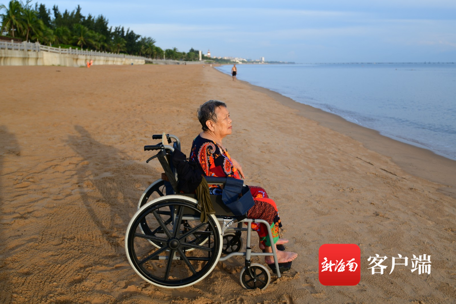 老人來自四川,因為身體的原因,行動不便,但是,老人就是很想看看大海。好在老人身邊的人都很孝順,想方設法滿足老人心愿。
