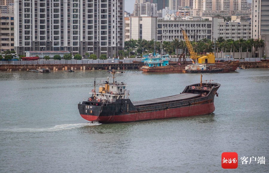 9月17日15時起瓊州海峽全線停航,圖為??谛阌⒏弁2吹目蜐L輪。記者 劉洋 攝