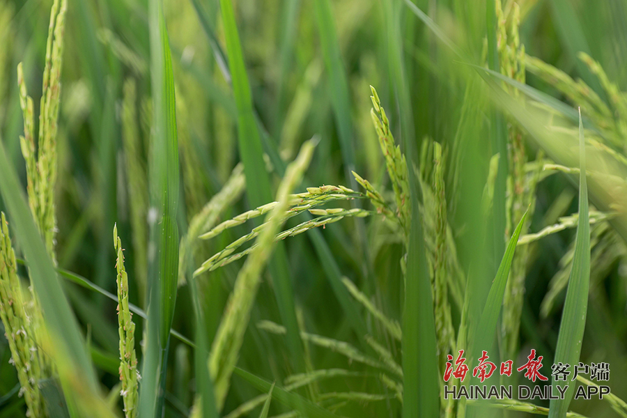 9月22日,五指山市毛陽鎮牙胡梯田的水稻抽穗開花。