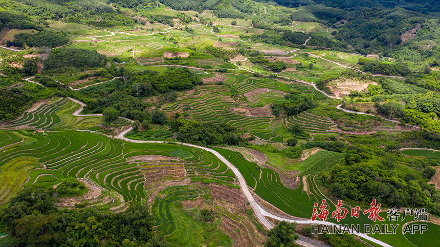 9月22日,五指山市毛陽鎮牙胡村的層層梯田在山巒間錯落有致。