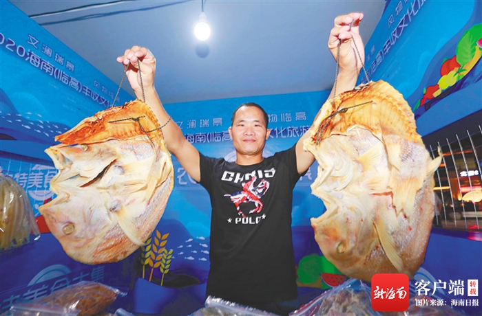 在農(nóng)特美食大集上,漁民展示海產(chǎn)品紅魚(yú)。海南日?qǐng)?bào)記者 陳元才 攝