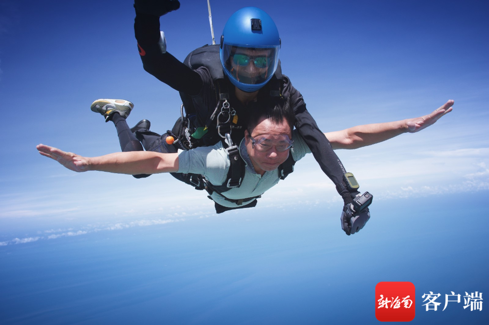 東方市長張長豐體驗(yàn)4000米高空跳傘。跳傘基地供圖