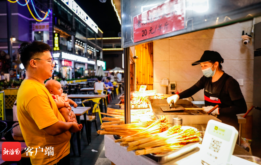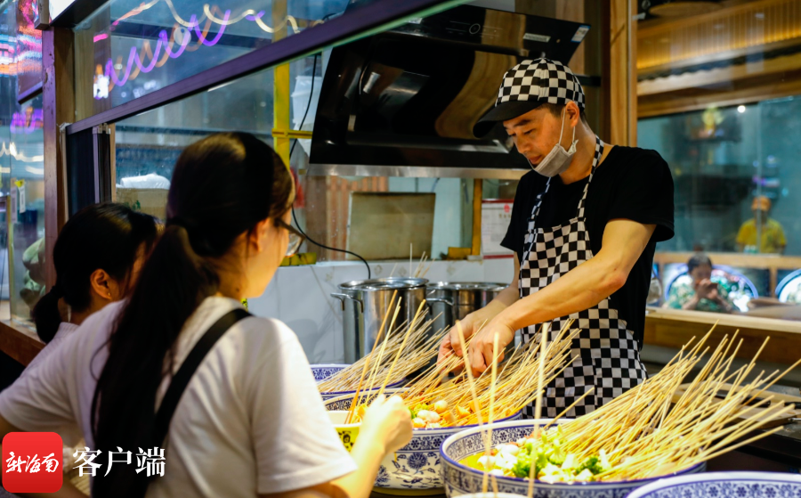 木桶魚(yú)、胖婆婆炸炸、雪里藏真椰奶清補(bǔ)涼、特色燒烤......走在夜市里,來(lái)自四面八方的美食香氣一股腦鉆進(jìn)鼻腔里,味蕾食欲瞬間被打開(kāi),令人口舌生津?!斑@里每家店都很有特色,環(huán)境優(yōu)雅,很有海口濱海城市特色?!眮?lái)自福建的游客李先生推薦了夜市的烤生蠔與海鮮粥,“味道特別好,價(jià)格也很實(shí)惠,值得多來(lái)吃吃逛逛?!?/span>