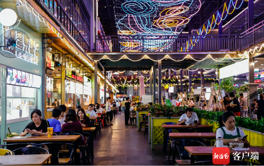 新海南客戶端、南海網(wǎng)、南國(guó)都市報(bào)10月4日消息(記者 杜倬荷)入夜時(shí)分,來(lái)到位于海口市秀英區(qū)的尋嘗里,仿佛穿越到一個(gè)色彩斑斕的都市桃源。以夢(mèng)幻的燈光為伴,穿過(guò)高大中空的通道,陣陣“穿堂風(fēng)”襲來(lái),給食肆檔口的客人帶來(lái)絲絲愜意與安然。人們?cè)谶@里推杯換盞、品嘗美食,細(xì)品著??谶@座濱海城市獨(dú)特的文化魅力。在8天“超級(jí)黃金周”里,卸下一身繁忙與疲累,讓尋嘗里帶你赴一場(chǎng)“夜市江湖”。