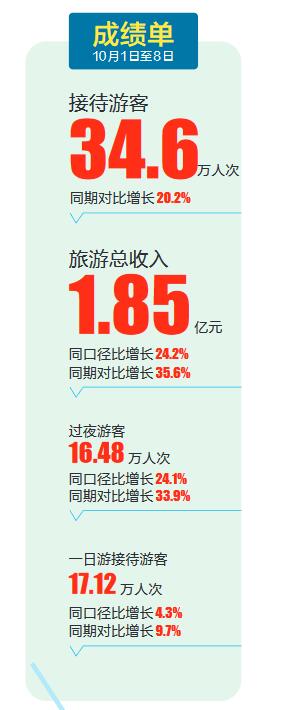 瓊海市旅文局消息,今年國慶中秋8天假期,瓊海市共接待游客34.6萬人次,同期對(duì)比增長(zhǎng)20.2%,實(shí)現(xiàn)旅游收入1.85億元,同口徑對(duì)比增長(zhǎng)24.2%,同期對(duì)比增長(zhǎng)35.6%,過夜人數(shù)16.48萬人次,同口徑對(duì)比增長(zhǎng)24.1%,同期對(duì)比增長(zhǎng)33.9%,一日游接待游客17.12萬人次,同口徑對(duì)比增長(zhǎng)4.3%,同期對(duì)比增長(zhǎng)9.7%。