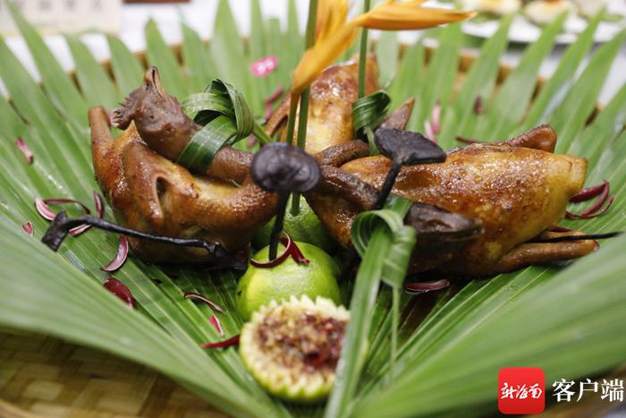 藥浴螞蟻雞、黎家撈寶、瓊海特色雜糧卷……擺在展臺上的特色小吃造型精致,色香味俱全,吸引現場不少游客駐足拍照,這些美食你都吃過嗎?